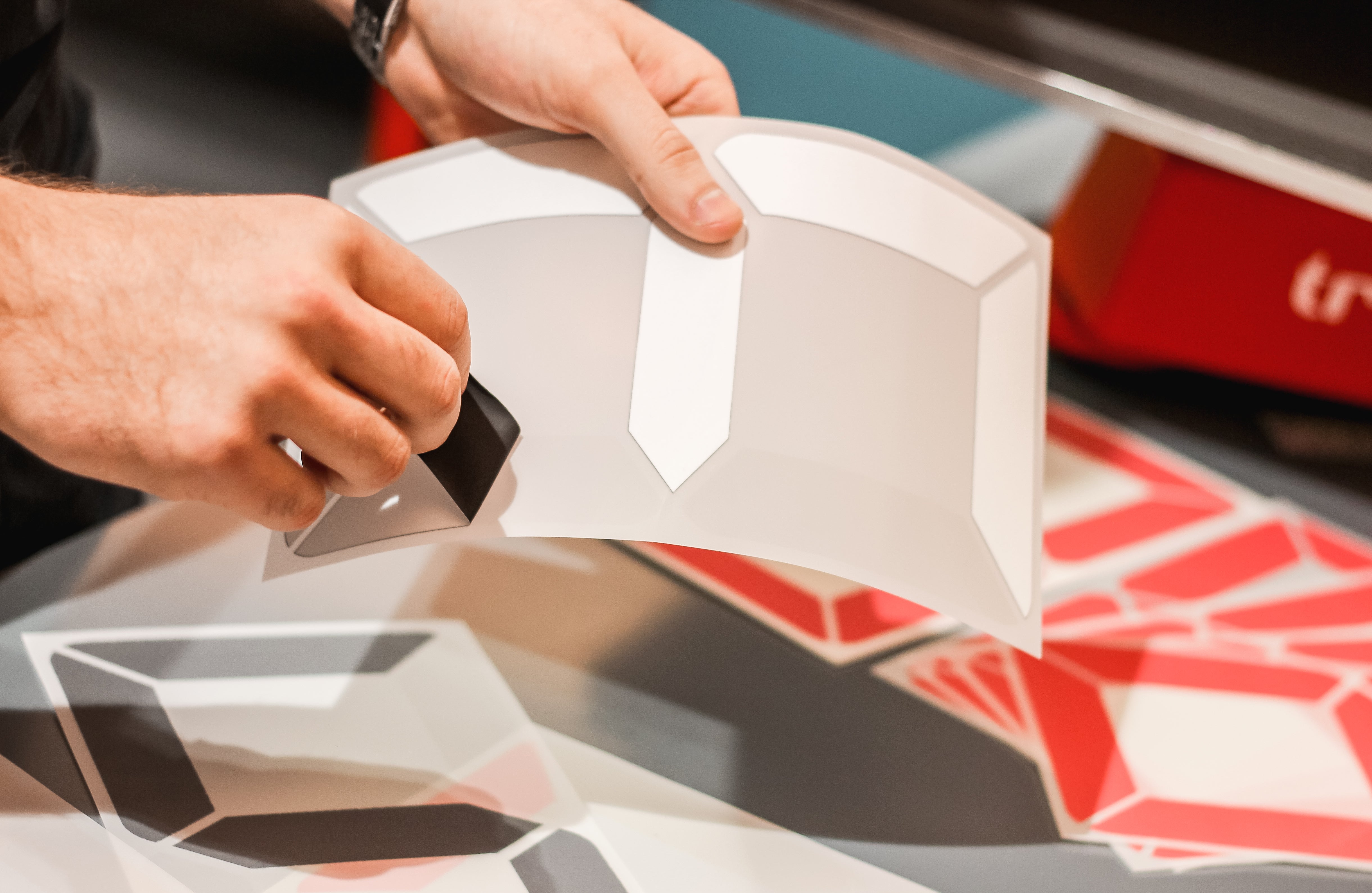 Det här är en av våra lurigaste produkter, eller snillrikaste: Digitalsiffran. Den levereras som en 8:a men innehåller alla siffror. Det enda du behöver göra är att dra loss delar, ungefär som skyddsplast från nyköpt teknik, så omvandlas transfern till siffran du behöver.